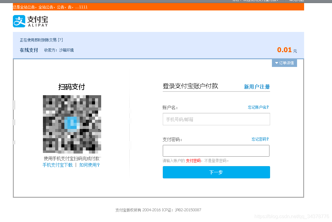 支付宝沙箱支付核心代码如下