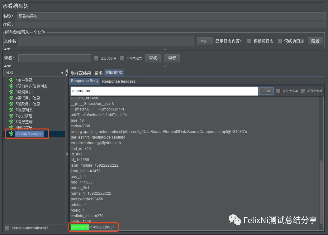 通过Debug Sampler打印出json提取器所提取的参数值