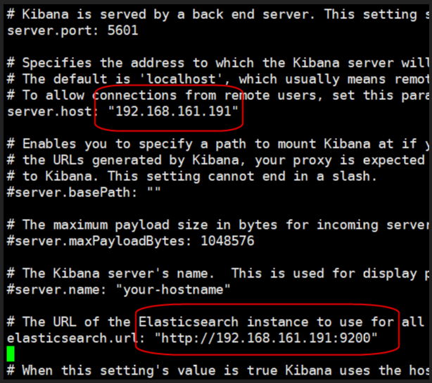 设置端口号:5601,Host地址:"192.168.161.191" ,elasticsearch服务地址为:"http://192.168.161.191:9200"