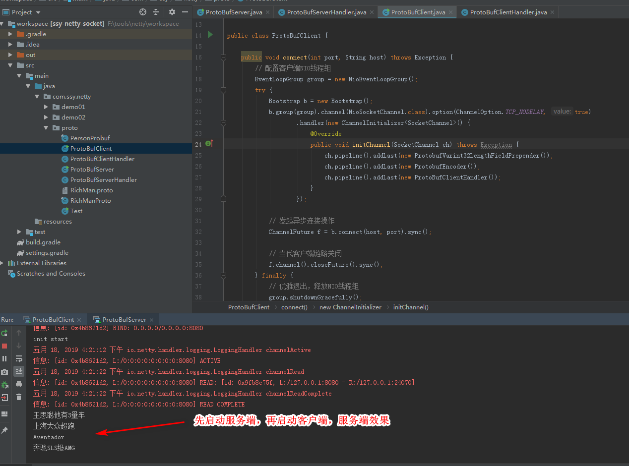 ch.pipeline().addLast(new ProtoBufServerHandler());