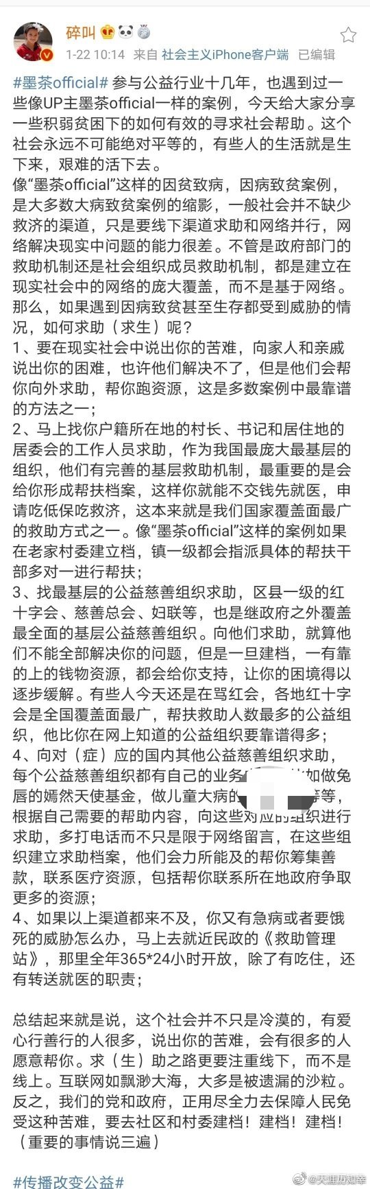 @康德0822 :今天看到了墨茶official的事情,难过了一整天。