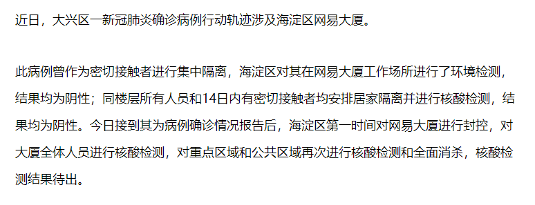 5、【北京:排查2020年12月10日以来所有入境进京人员】今天下午,在北京市新型冠状病毒肺炎疫情防控工作第217场新闻发布会上,北京市委宣传部对外新闻处处长田伟介绍,对2020年12月10日以来所有入境进京人员进行排查,开展血清抗体检测,尽快查清传播链条。要严格入境进京人员“14+7+7”措施,查找入境人员和货物潜在风险点。