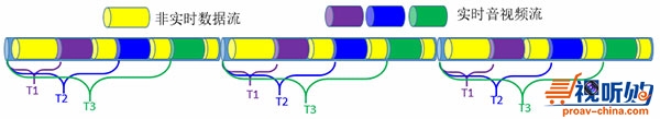 比如在一个带宽里,有非实时数据和3个实时数据流。未经整形的带宽,极易产生重叠。