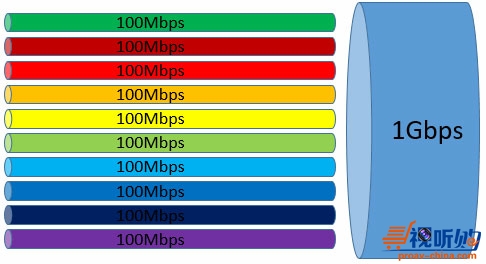 正确理解网络带宽是理解“时间敏感网络”的前提。我们先举个例子:如果我们有10个数据流(当然每个数据流中会有成千上万个数据帧),每个数据流的带宽是100Mbps,那么这10个数据流可以通过1Gbps的带宽吗?我们可以用图三来表示吗?