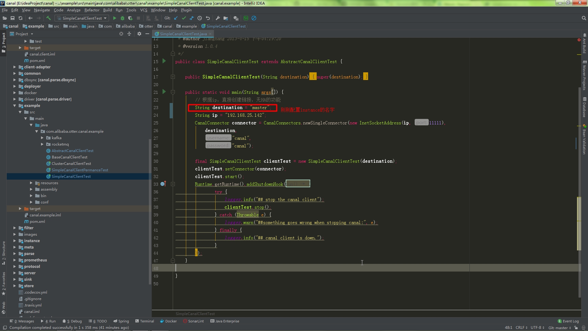 $ docker logs canal-server