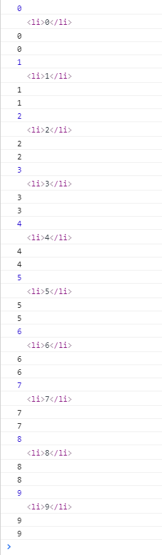 console.log(domElement) -- 输出的是 <li>0</li> 当前索引的值