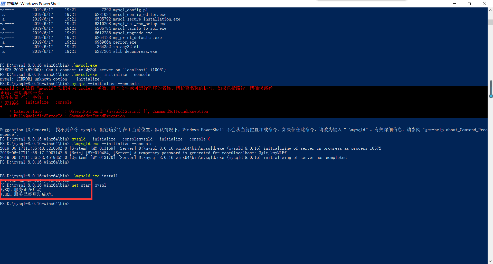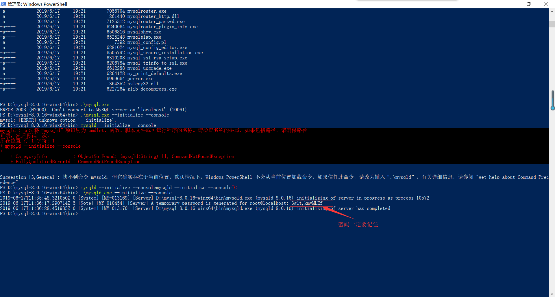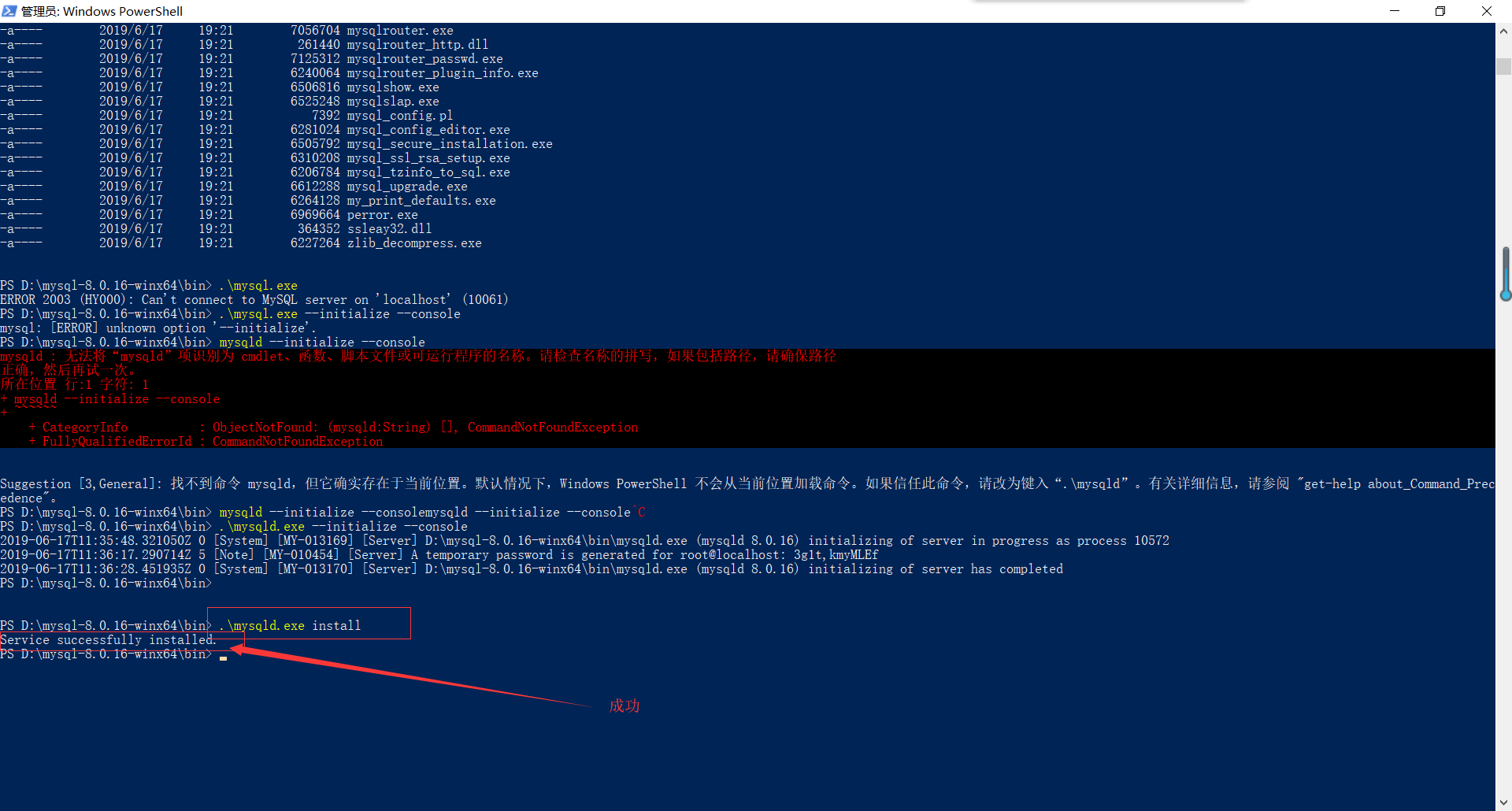 在MySQL的安装目录的仓目录下执行命令:(必须用系统管理员身份运行的cmd中执行,有的系统可能出问题 )