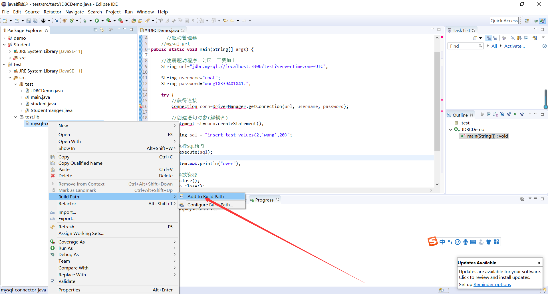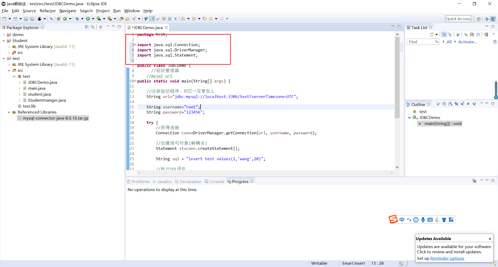 String url="jdbc:mysql://localhost:3306/test?serverTimezone=UTC";