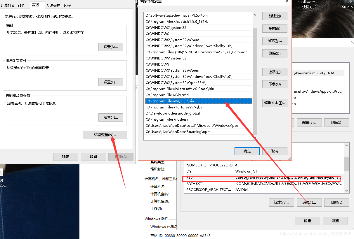 我们去系统的环境变量的path里添加一个mysql的配置 指向mysql的bin目录