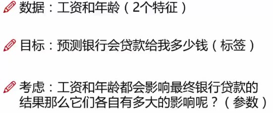 X1,X2就是我们的两个特征值(年龄,工资),而Y是最终银行会借给我们多少钱。