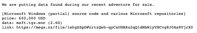 SolarLeaks 网站声称以 60 万美元的价格出售微软 2.6G 大小的源代码和存储库。