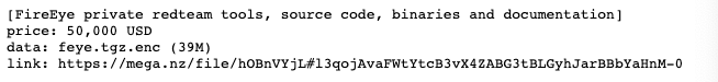 同时泄漏的还有美国顶级安全公司 FireEye 的红队渗透工具,叫价最为便宜,只要 5 万美元。
