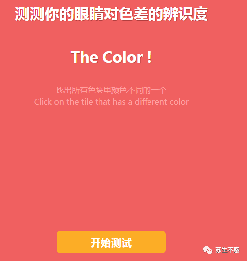 来测测你眼睛对色差的辨识度, 找出所有色块里颜色不同的一个http://www.cuishuai.cc/game/   有60秒倒计时时间。