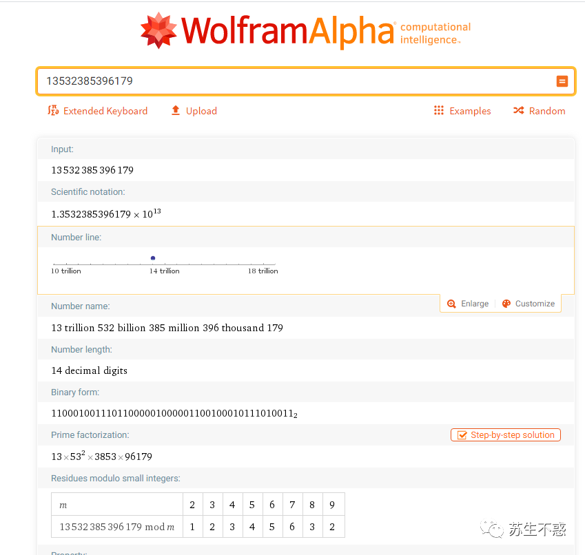 这是一个计算知识引擎,不像百度/谷歌那样的搜索引擎,它能根据问题直接给出答案,比如求数字 13532385396179 的质因数分解 https://www.wolframalpha.com/input/?i=13532385396179