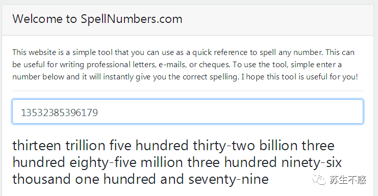 如果想知道 13532385396179 怎么用英语读看看这个 https://spellnumbers.com/