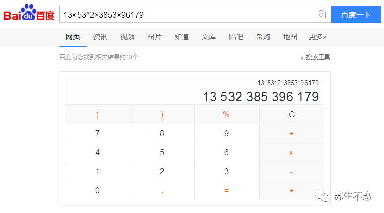 13532385396179=13×53^2×3853×96179 ,跟百度结果一样。