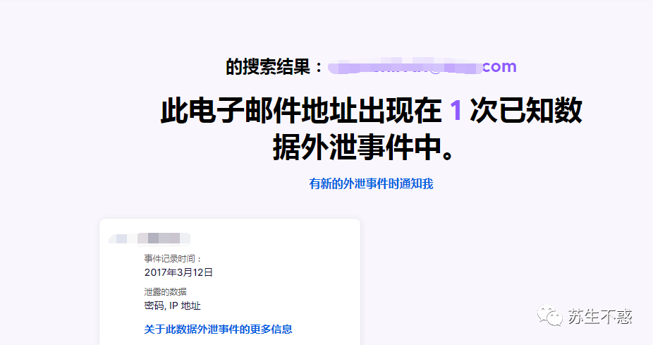 输入邮箱,检测到我的某个邮箱2017年就泄露了。。。