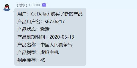 插件功能:对接腾讯QQ机器人HOO!K机器人,安装插件并开启后,打开插件设置,填写腾讯提供的key保存即可,先有功能,用户登陆时,群内会有消息通知,用户购买产品时,群内会有消息通知