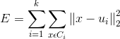 是簇Ci的均值向量。从上述公式中可以看出,该公式刻画了簇内样本围绕簇均值向量的紧密程度,E值越小簇内样本的相似度越高。