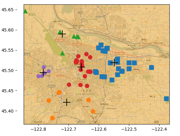 对地图上的点进行聚类:没有使用API,直接从places.txt中获取各俱乐部的经纬度信息。