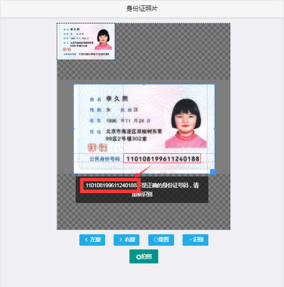 请求地址 http://localhost:8080/idCard/index 它基于 openCV 开源库。这意味着你可以获取全部源代码,并且移植到 opencv 支持的所有平台。它是基于 java 开发。它的识别率较高。图片清晰情况下,号码检测与识别准确率在90%以上。
