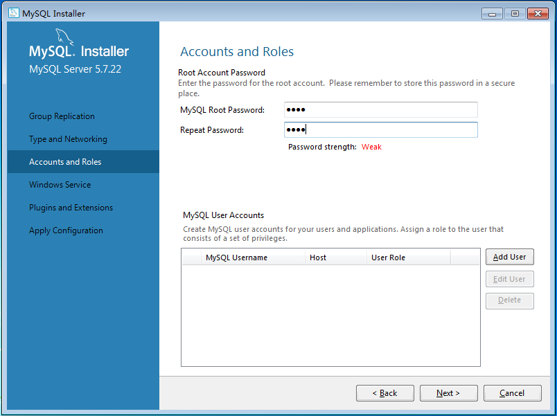系统默认的用户名称为root,如果想添加新用户,可以单击【add User】(添加用户)按钮进行添加。
