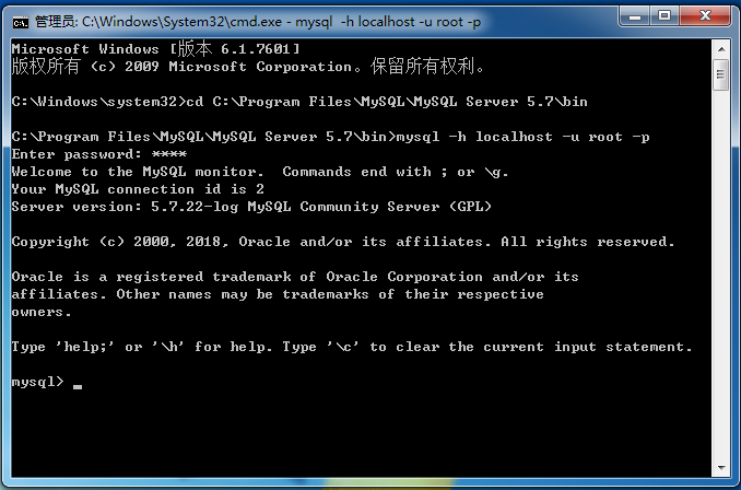 cd C:\Program Files\MySQL\MySQL Server 5.7\bin