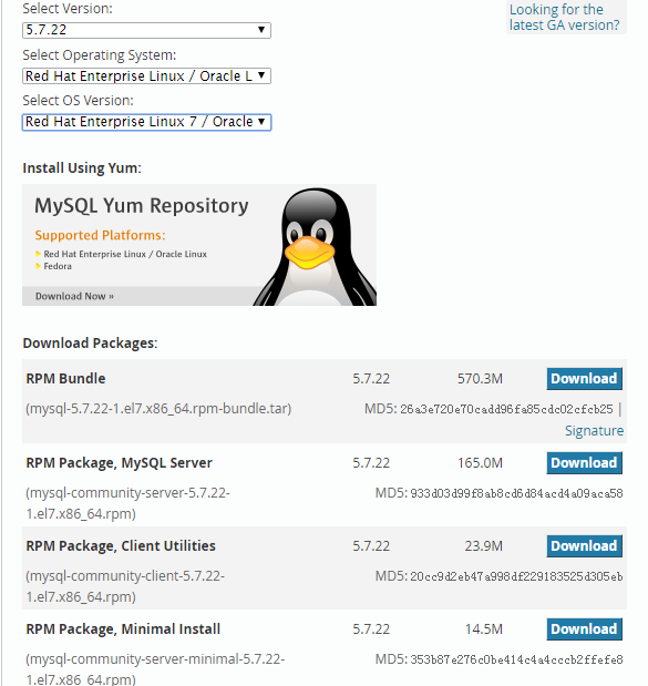 MySQL5.7.22 官方下载地址: mysql-5.7.22-1.el7.x86_64.rpm-bundle.tar