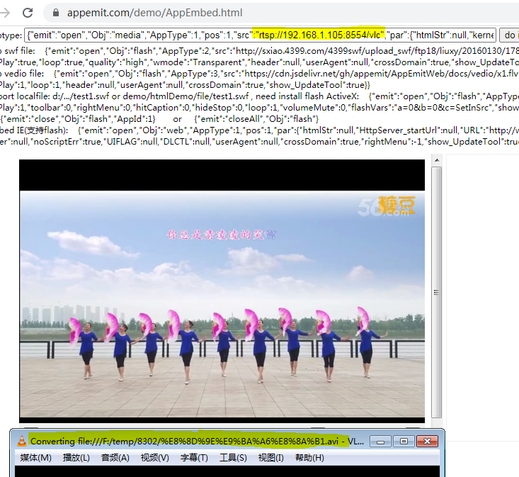 AppEmit v1.0.9 新功能 浏览器调用本地应用程序 调用第三方DLL ,支持使用vlc在chrome等各种浏览器打开rtmp rtsp 更多主页 下载 使用vlcplayer 转换提供rtsp直播流,在chrome打开播放。 来源:oschina链接:https://my.oschina.net/u/3101335/blog/4559140 标签 Chrome