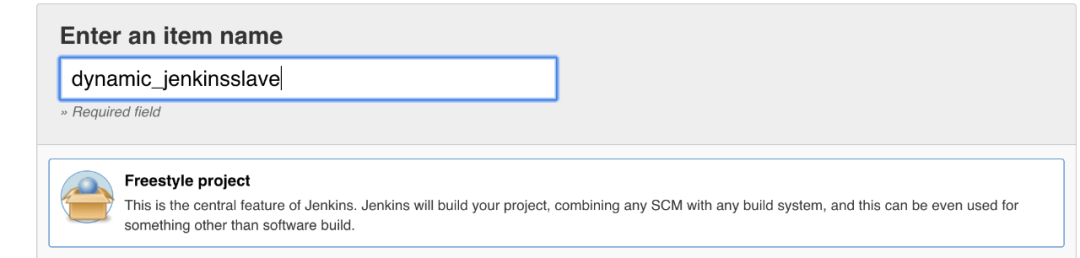 在 Jenkins 首页点击create new jobs,创建一个测试的任务,输入任务名称,然后我们选择 Freestyle project 类型的任务: