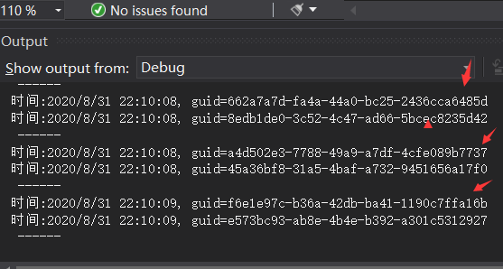 guid = $"时间:{DateTime.Now}, guid={ Guid.NewGuid()}";