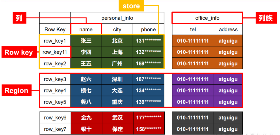 列族来存储数据的。列族下面可以有非常多的列,在创建表的时候列族就必须指定。