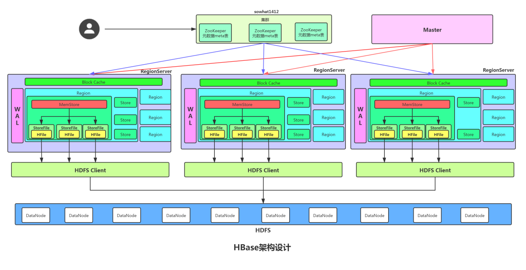 Client 包含了访问 Hbase 的接口,另外 Client 还维护了对应的 cache 来加速 Hbase 的访问,比如缓存元数据的信息。