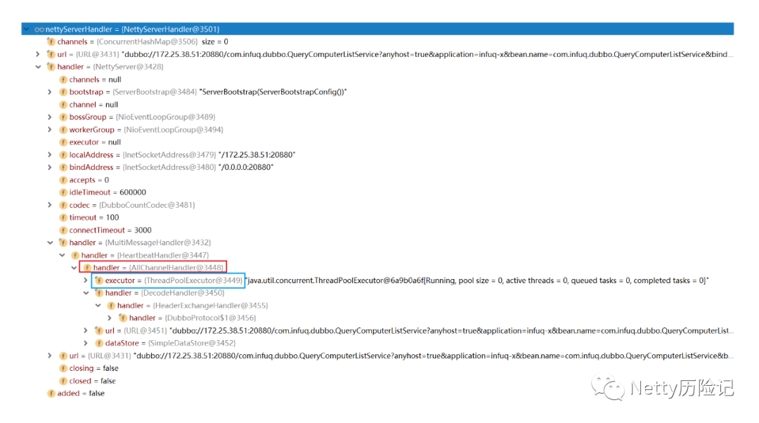 如上图, 在AllChannelHandler中有个executor属性,它是一个线程池.