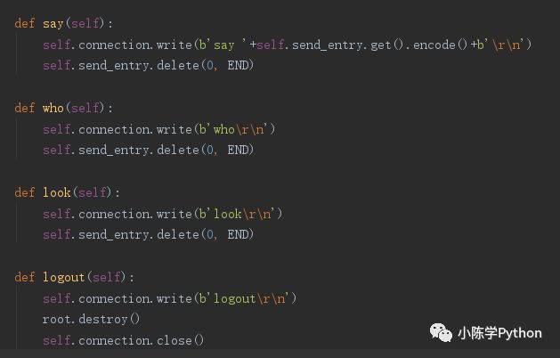 然后是unknown方法,这个可以不用管了,因为图形用户界面命令和按钮事件绑定在一起了,已经不需要用户手动输入命令了,也就是已经不存在未知命令了。
