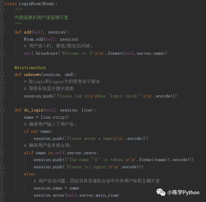 当客户端一旦连接上服务器(还没登录),就在LoginRoom类的实例里面,同时,服务器还会发送一条欢迎信息到客户端,这条欢迎信息对于判断是否登录成功一点作用都没有,但是它又必须要被接收,因为这个项目中,客户端和服务器之间的通信是基于TCP协议的,TCP协议规定发送的数据一定要被对方接收,接收后返回一个确认给发送方,让发送方继续发送数据,如果这个确认没有收到,发送方就认为连接超时,需要重传。