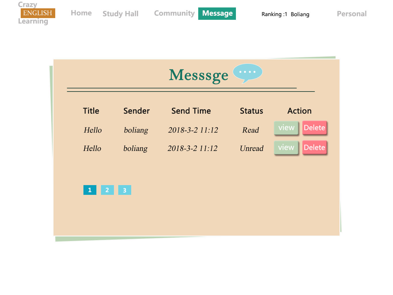 查看总积分排行前10的用户的信息(用户名,总积分,排名,单词学习积分,短语学习积分,句子翻译学习积分,完型填空学习积分,阅读理解学习积分,写作学习积分) 对他们的互动有好友添加和留言