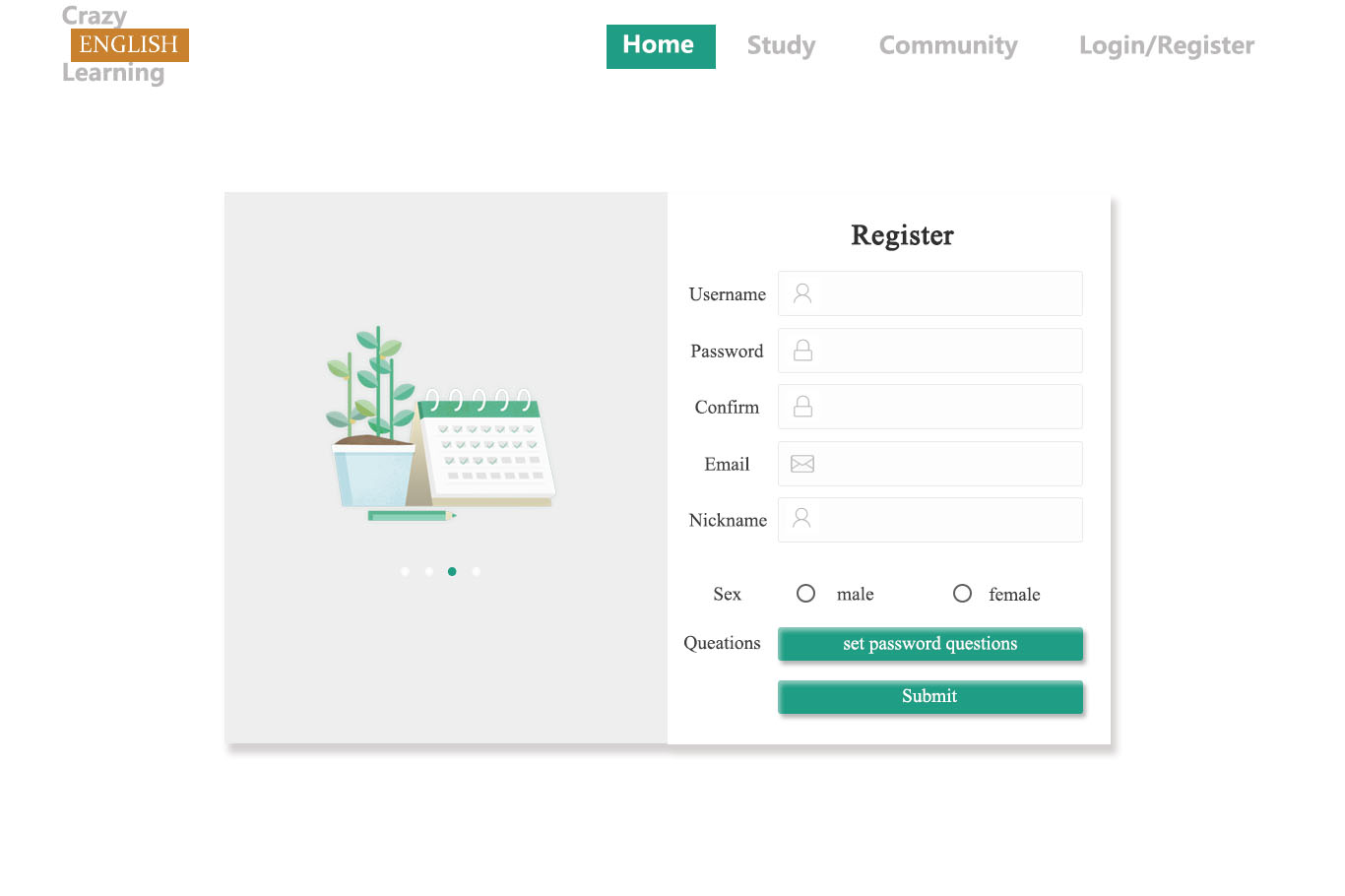 整个项目我们大概分为六大模块层,第一模块是数据操作层,主要是存放数据,数据底层操作;第二模块是业务逻辑模块,主要是提供网站的业务逻辑处理,跟网络通信层和数据操作层紧密结合;第三模块是服务器通信层,主要是提供网络通信,稳定进行网络服务,这一层我们考虑采用nginx作为服务器进行网络通信服务;第四模块是前端模块,主要是进行客户页面的友好显示和提供前端服务逻辑,这一模块我们分为两个版本,一个PC页面响应式版,一个是手机端页面版。第五大模块是爬虫和数据处理模块,主要是进行分布式爬虫爬取网站所需要的数据,爬取的数据将暂放到Mongodb中,同时还要负责对爬取的数据进行数据清洗和数据筛选。第六大模块是数据分析模块,这一模块使用机器学习算法对用户数据进行分析,自动对用户的英语学习作出智能的学习报告,以及进行题目的智能推荐,让用户更好地更有效率地进行针对性学习。