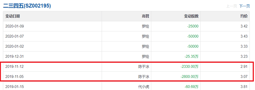 或许是急于改善生活,2019年11月5日和11月12日,陈于冰分两次减持2800万股和2330万股,平均股价3元左右,减持金额约1.5亿元。减持后,陈于冰仍持有1.54亿股,市值约4.5亿元。