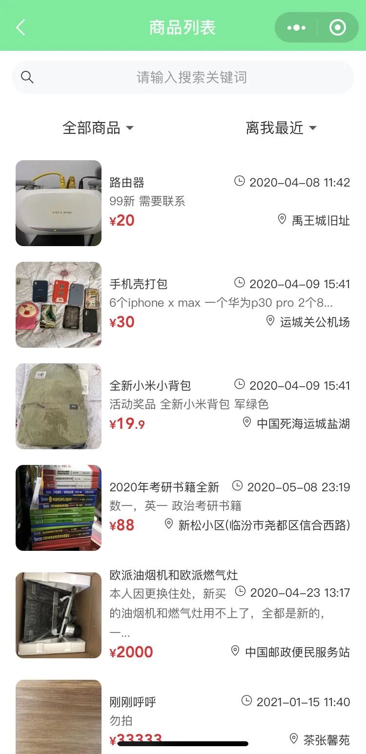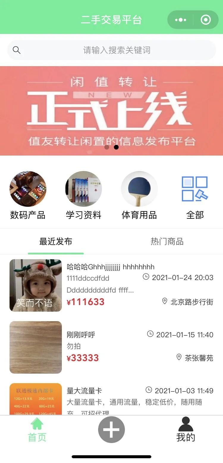 一款应用于校园场景的二手交易平台小程序,可以方便的进行二手商品信息发布、搜索、收藏、编辑、删除、分享等操作。