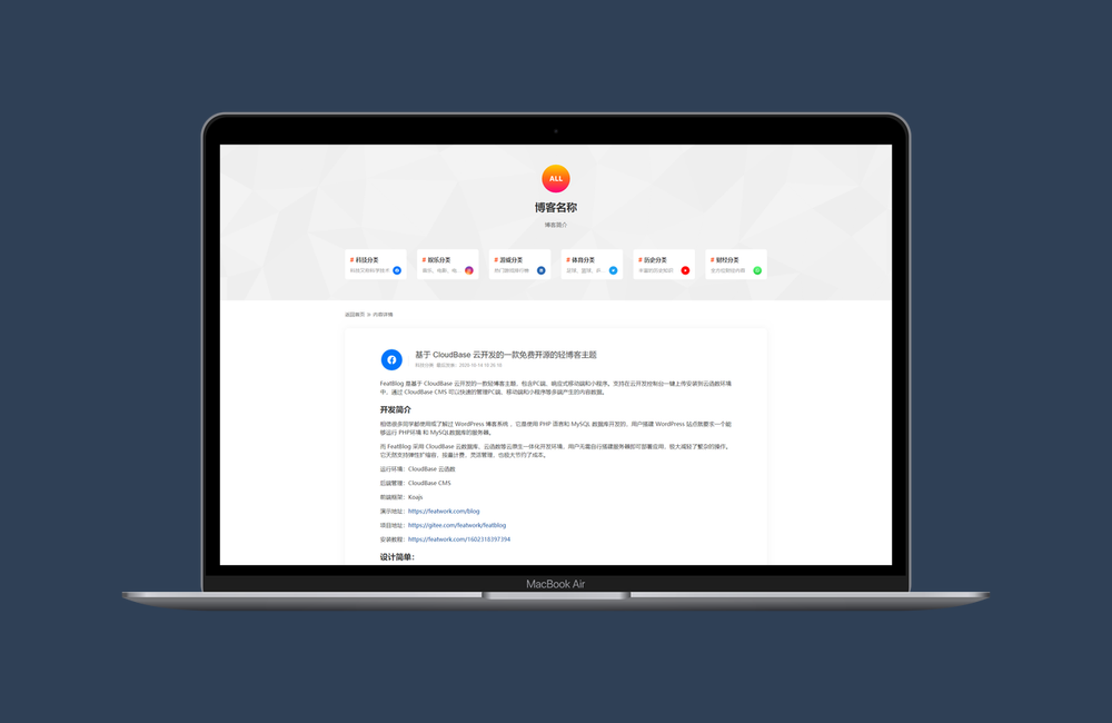 FeatBlog 是基于 CloudBase 云开发的一款免费开源的轻博客主题,包含PC端、响应式移动端,致力于为用户提供设计简约且操作简单的博客网站。