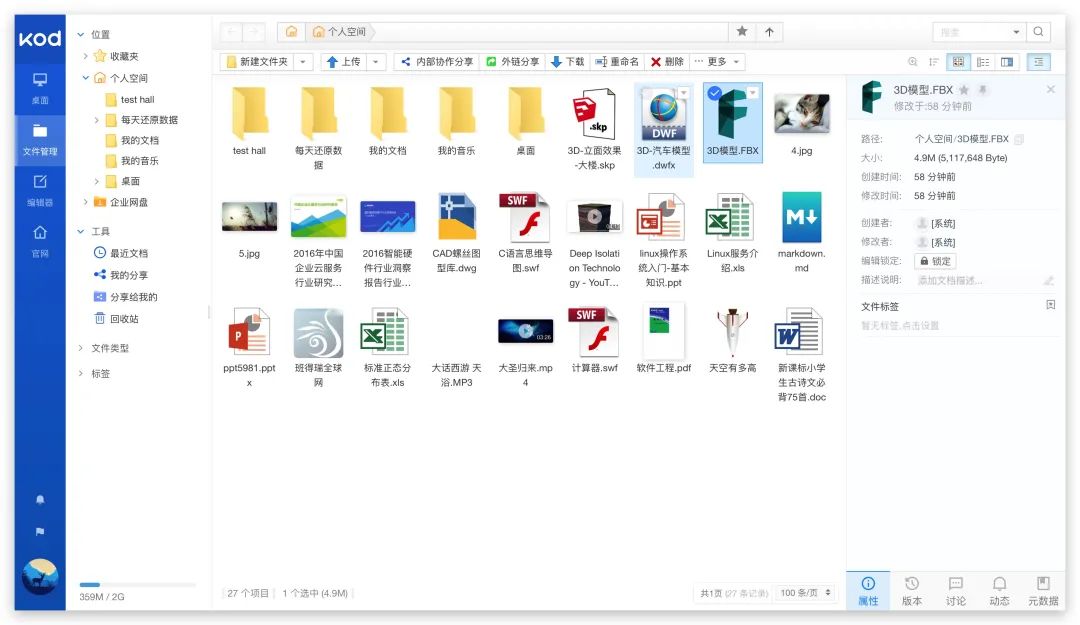 可道云KodExplorer(原芒果云)提供私有云存储/企业网盘/企业云盘和在线文档管理解决方案,助力企业/个人实现办公协作、Office在线编辑、安全存储访问和组织权限控制。