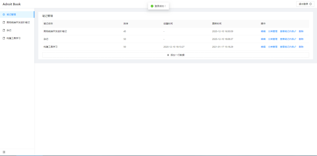 一个Markdown笔记应用。登录可添加笔记,分类,使用Markdown编辑文章,可以让其他人查看你分享的笔记内容!