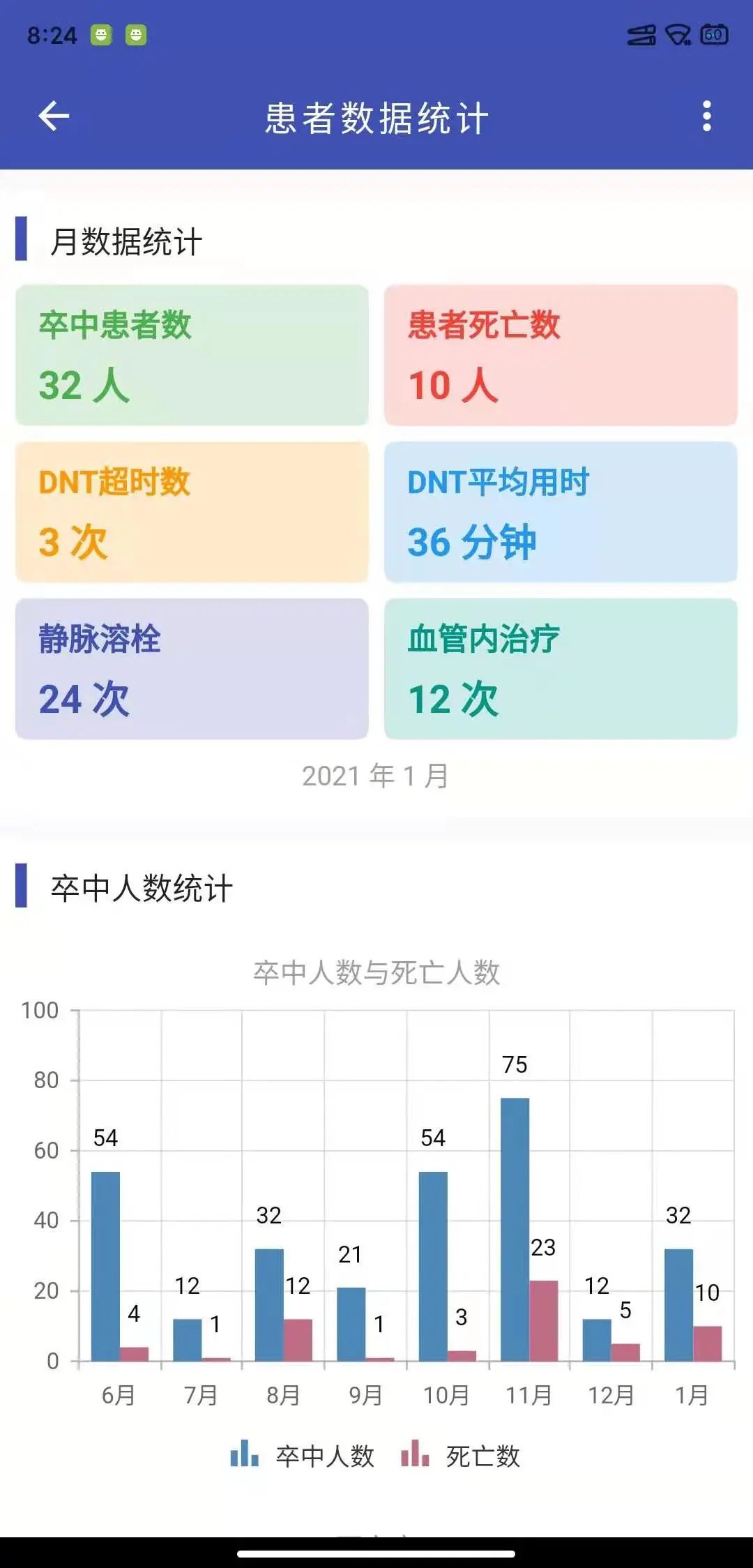 卒中中心信息采集系统作为一种新型医疗服务系统,通过信息在线共享和数据统计分析,方便医护人员随时查询工作流程及患者信息,缩短候诊、检查等治疗操作时间。