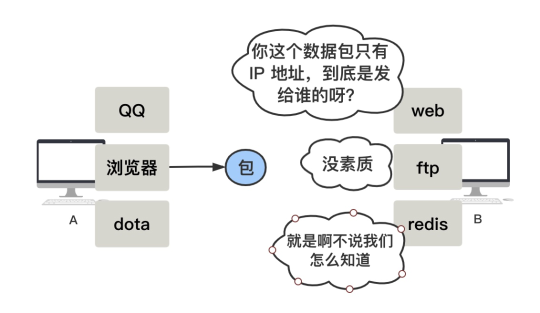 前三层协议只能把数据包从一个主机搬到另外一台主机,但是,到了目的地以后,数据包具体交给哪个程序(进程)呢?