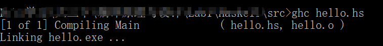 其中“--”后是注释。将文件保存,并将文件后缀改为.hs。打开cmd,输入 ghc hello.hs
