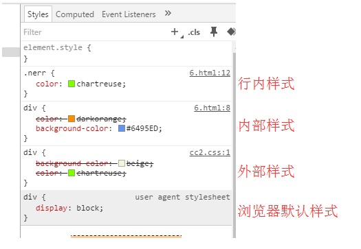 针对相同的样式属性,不同的样式属性将以合并的方式呈现