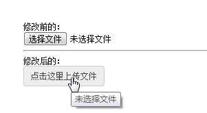 上面美化,把默认显示的文件名也给隐藏掉了,那么如何显示文件名称呢?没关系,我们可以用jquery来获取文件的文件名。 我们可以写个change事件