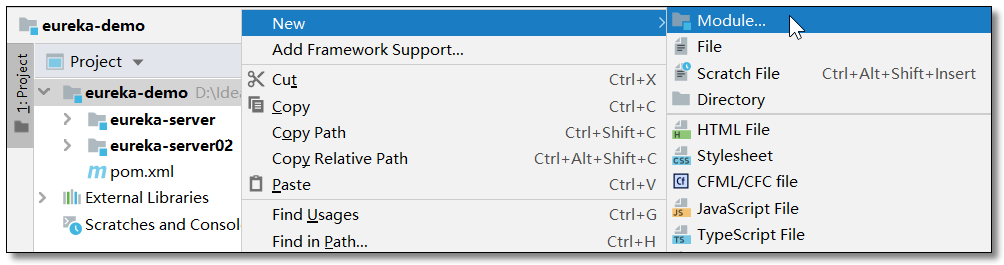 在刚才的父工程下再创建一个 eureka-server02 注册中心的项目,如果是多机器部署不用修改端口,通过 IP 区分服务,如果在一台机器上演示需要修改端口区分服务。