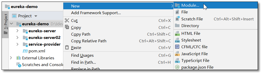在刚才的父工程下创建 eureka-server 注册中心的项目。